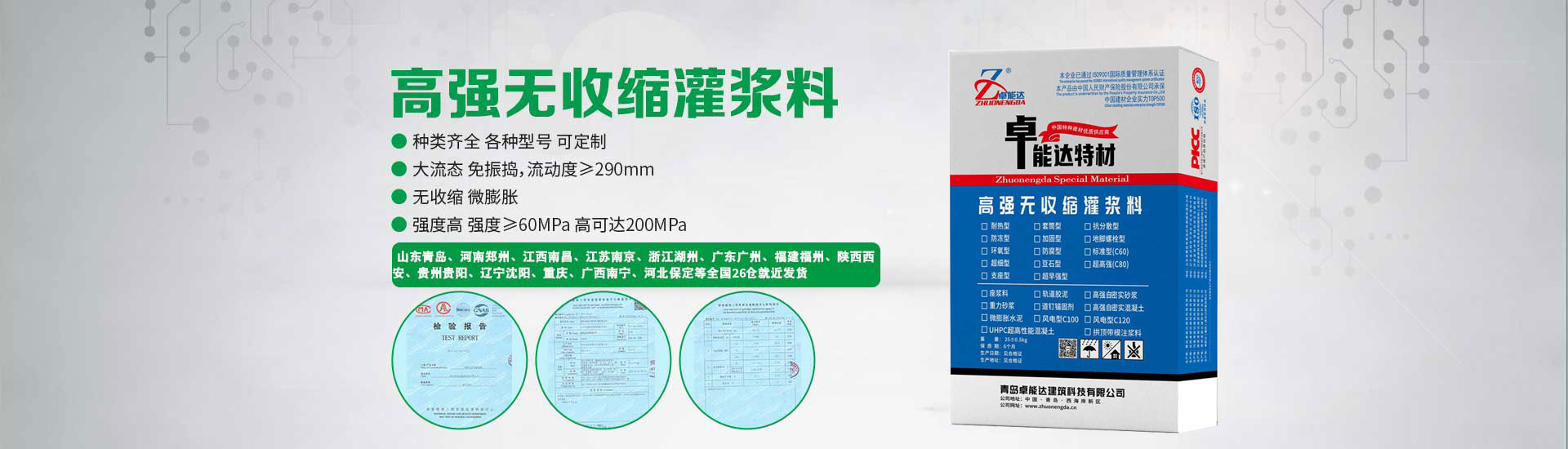 卓能達目前在河南鄭州、山東青島、江西南昌、江蘇南京、浙江湖州、廣東肇慶、廣東惠州、福建福州、陜西西安、貴州貴陽、遼寧沈陽、重慶、廣西南寧、河北保定、新疆烏魯木齊等均有倉儲中心,形成覆蓋全國的生產和銷售網絡。